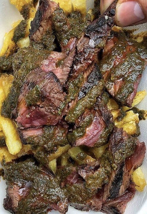 ポテトとステーキでしめて400円くらいかな