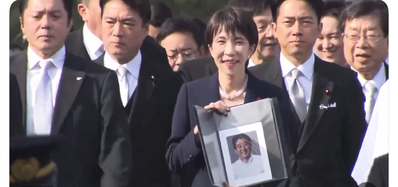 高市総理「伊勢志摩サミットで各国首脳と一緒に撮られた写真と、遺影に使われたお写真を持って来た。『伊勢神宮に来ましたよ、再び安倍総理も来られましたよ』という思い」